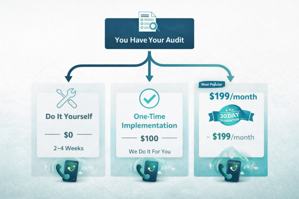 ✓ Hire us for $100 one-time, we implement everything in the audit for a single flat fee