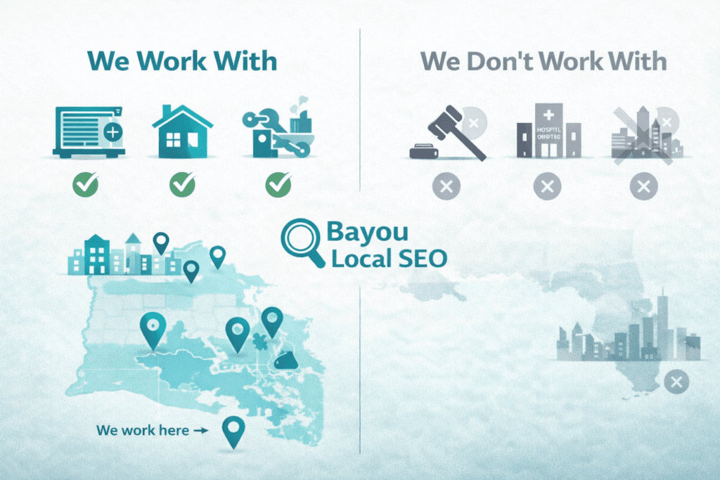 Bayou Local SEO was built for one reason — to help local service businesses in smaller markets rank on Google without needing enterprise budgets, 12-month contracts, or endless “trust the process” timelines.
